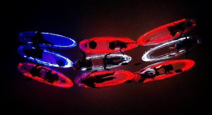 Em Toronto, a pedida é sair por aí brilhando no escuro a bordo de um dos caiaques transparentes que vem recheado de luzes de LED e que oferece ainda um sistema de bluetooth para que o ocupante possa trazer de casa a trilha sonora para o próprio passeio.
